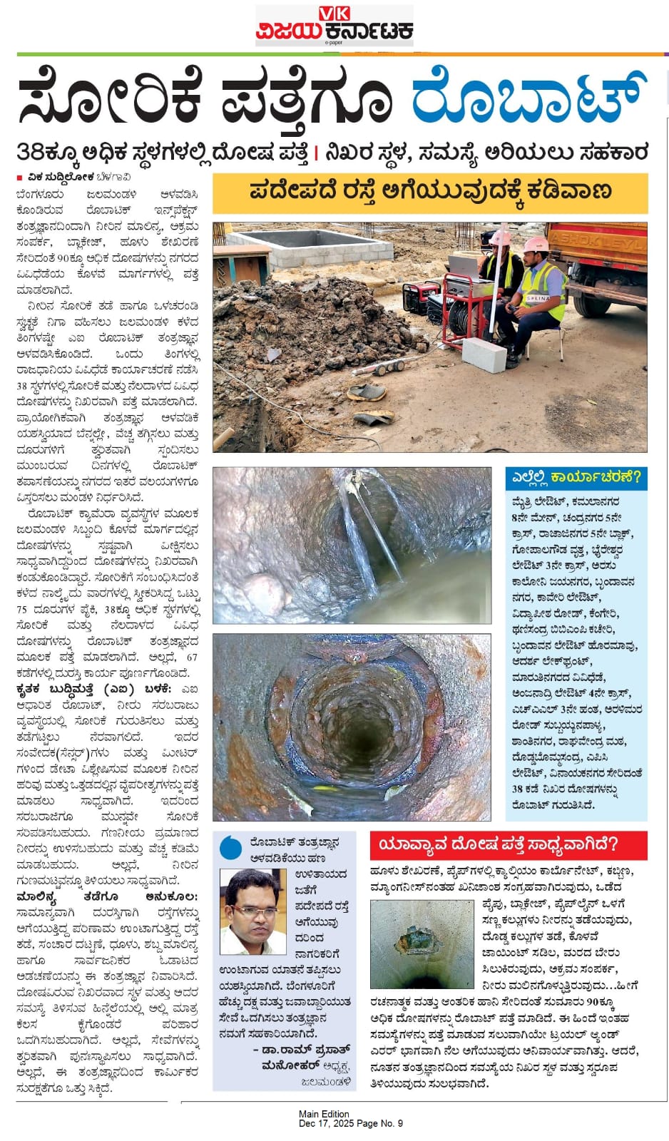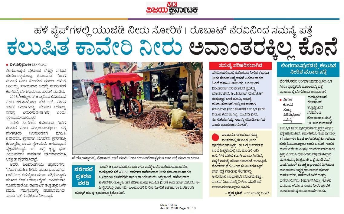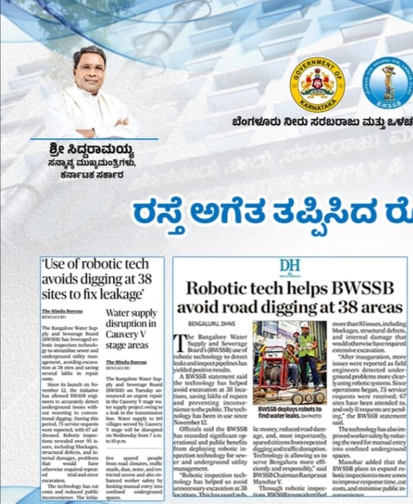 Solinas Integrity News: Use of robotic tech avoids digging at 38 sites to fix leakage: BWSSB The Hindu December 17, 2025